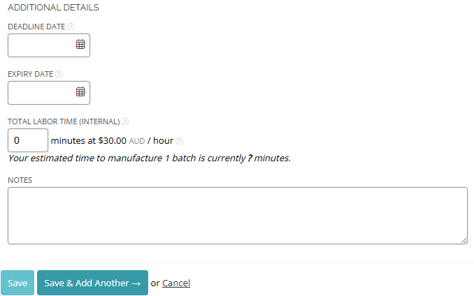 - Assignee: Select a team member to assign the manufacture to. This helps you track who completed each batch