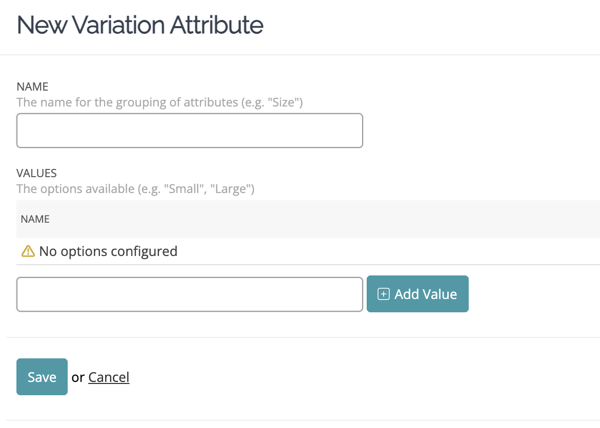 - Attributes: This is the unique value of your product variation, you can also create a new attribute value directly from this field.