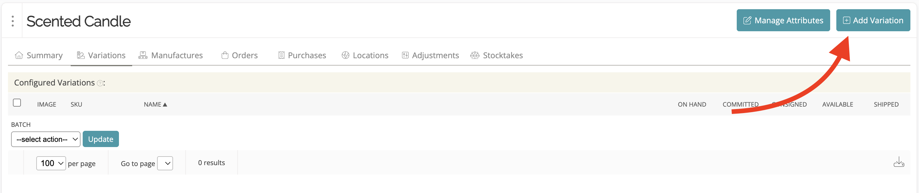 This will redirect you to the variation section where you’ll add and manage all variations.