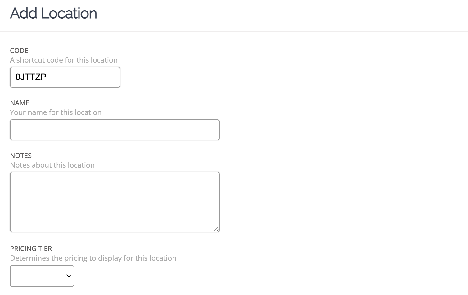 - Pricing Tier: Determines the pricing displayed for this location. Choose from your existing pricing tiers.