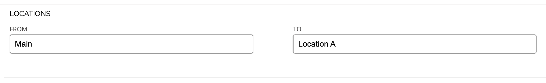 - To: The location you're moving stock to - when the transfer is saved, the receiving location will display an increased Available quantity.