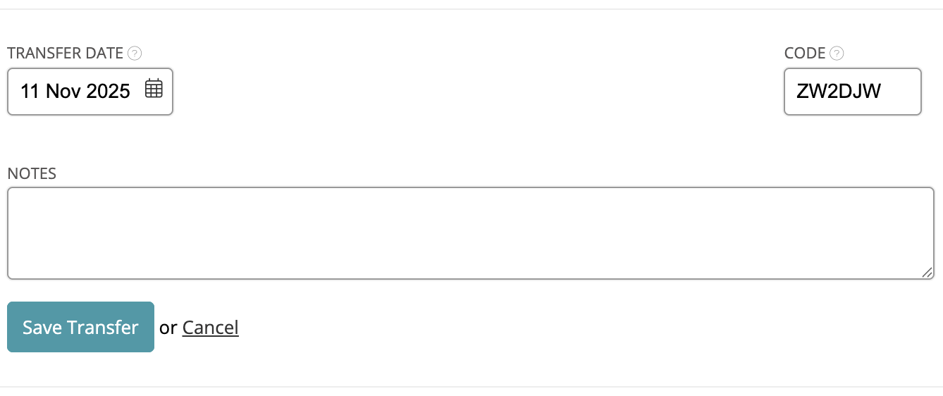 If you need a new location, click inside the search box and select the + button to add it directly from the transfer form.