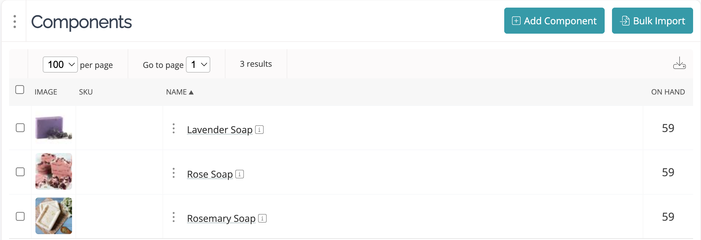 When you manufacture the soap, you’ll be creating component stock, not a finished product. These components can then be used as materials in other product recipes.