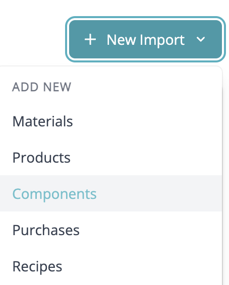 Click the "New Import" option and select "Components" from the dropdown menu.