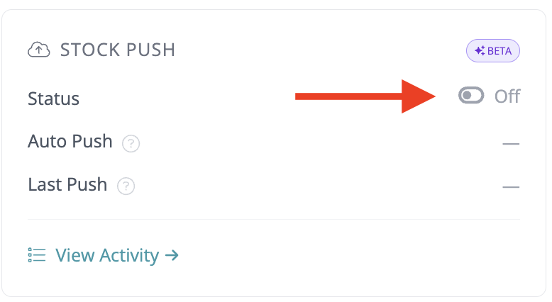 Under the Stock Push column, toggle Status to on.