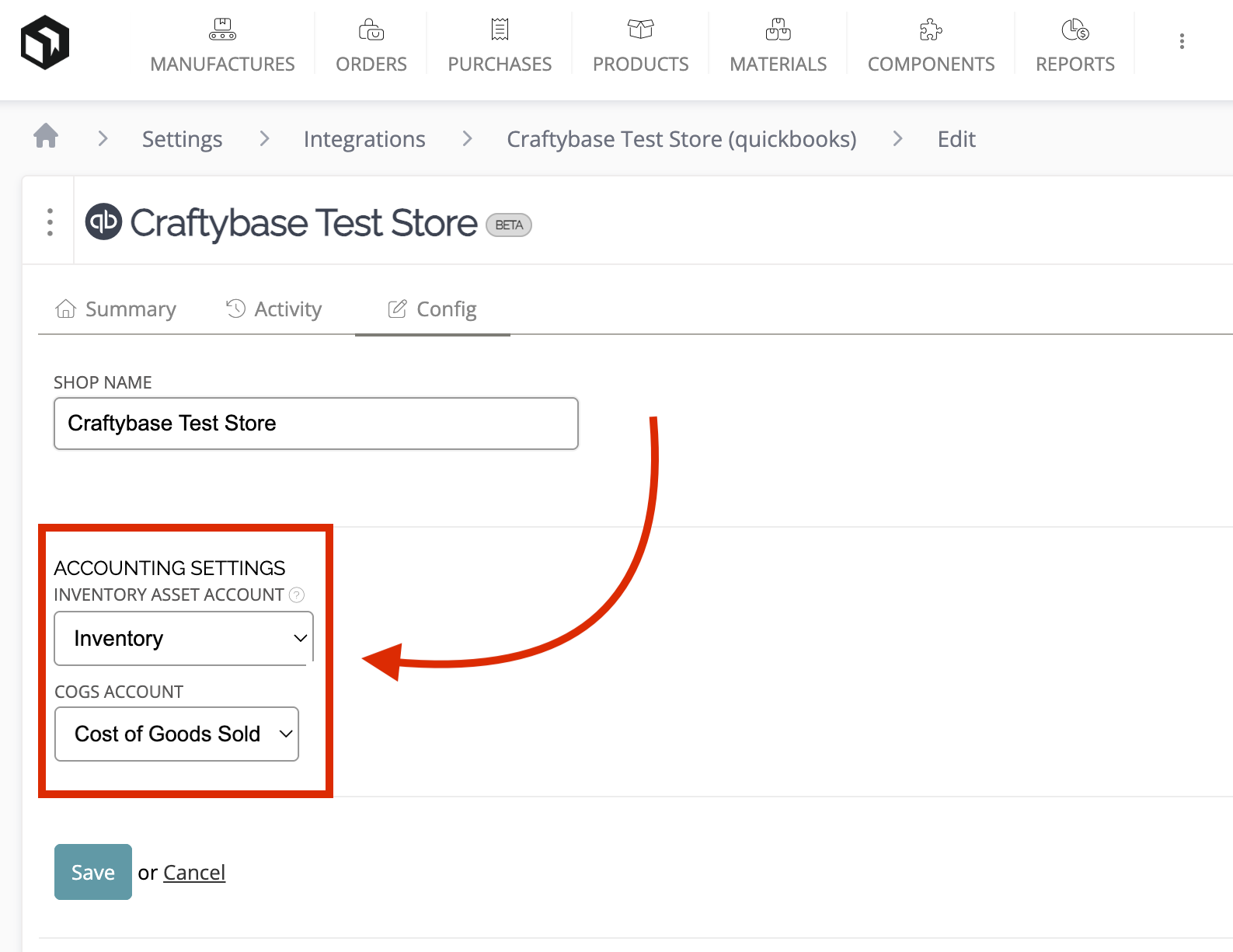 To connect your QuickBooks account to Craftybase: