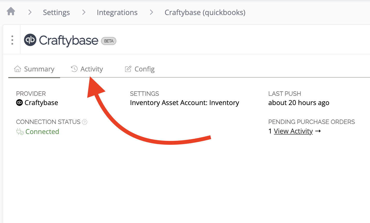 - Pending: the PO has been created in Craftybase and is queued to be pushed