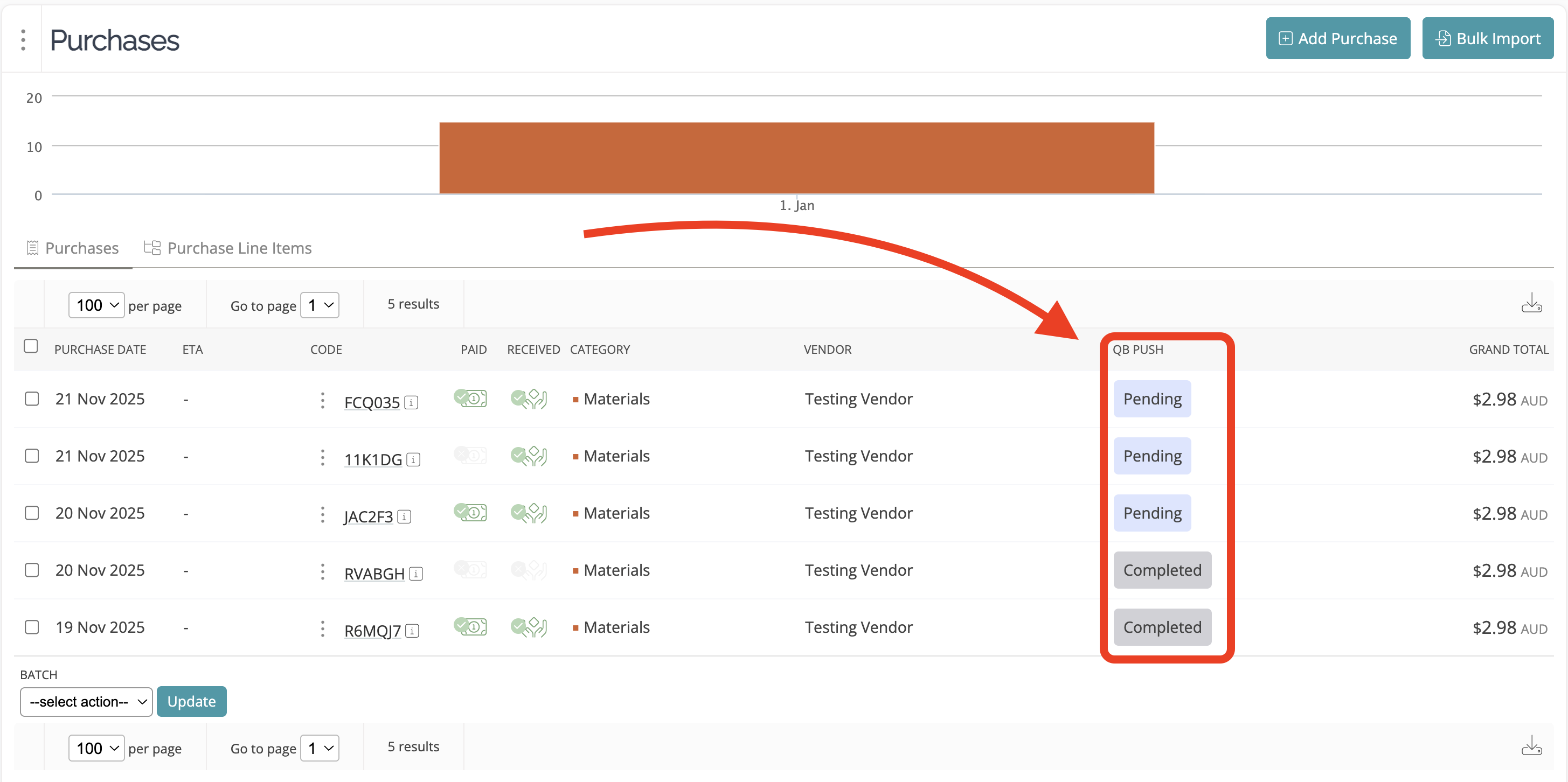 Quickbooks Status in your Purchases list