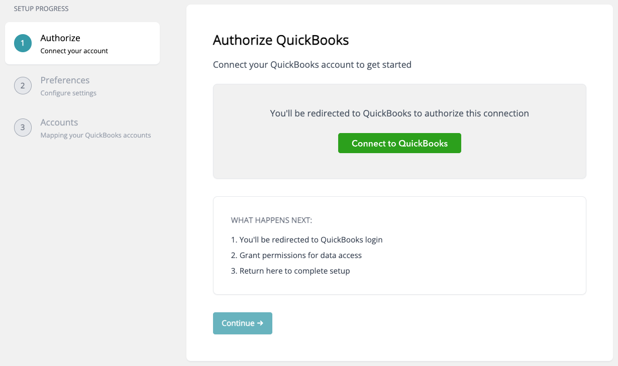 - You’ll then be redirected to the QuickBooks Setup Wizard, which will guide you through the connection and configuration steps.